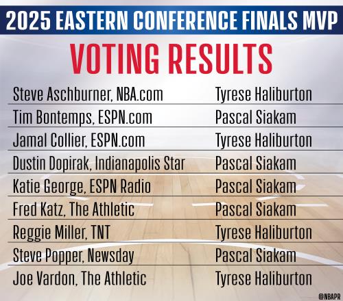 赛后,西亚卡姆当选东决MVP,在投票中,他获得5票,险胜哈利伯顿的4票。